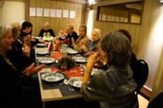 We hadden een heerlijk diner afgesproken met Nelleke van de Harmoniezaal. De tafels waren feestelijk gedekt en er werd volop genoten van het eten en elkaars gezelschap. We begonnen met twee soorten soep.